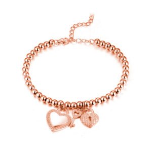 - צמיד כסף “מפתח הלב” בצבע רוז גולד.